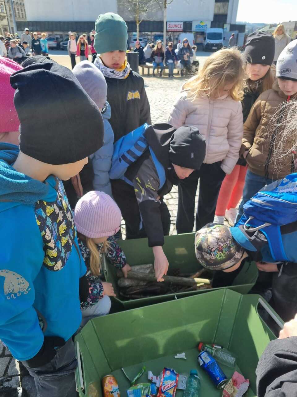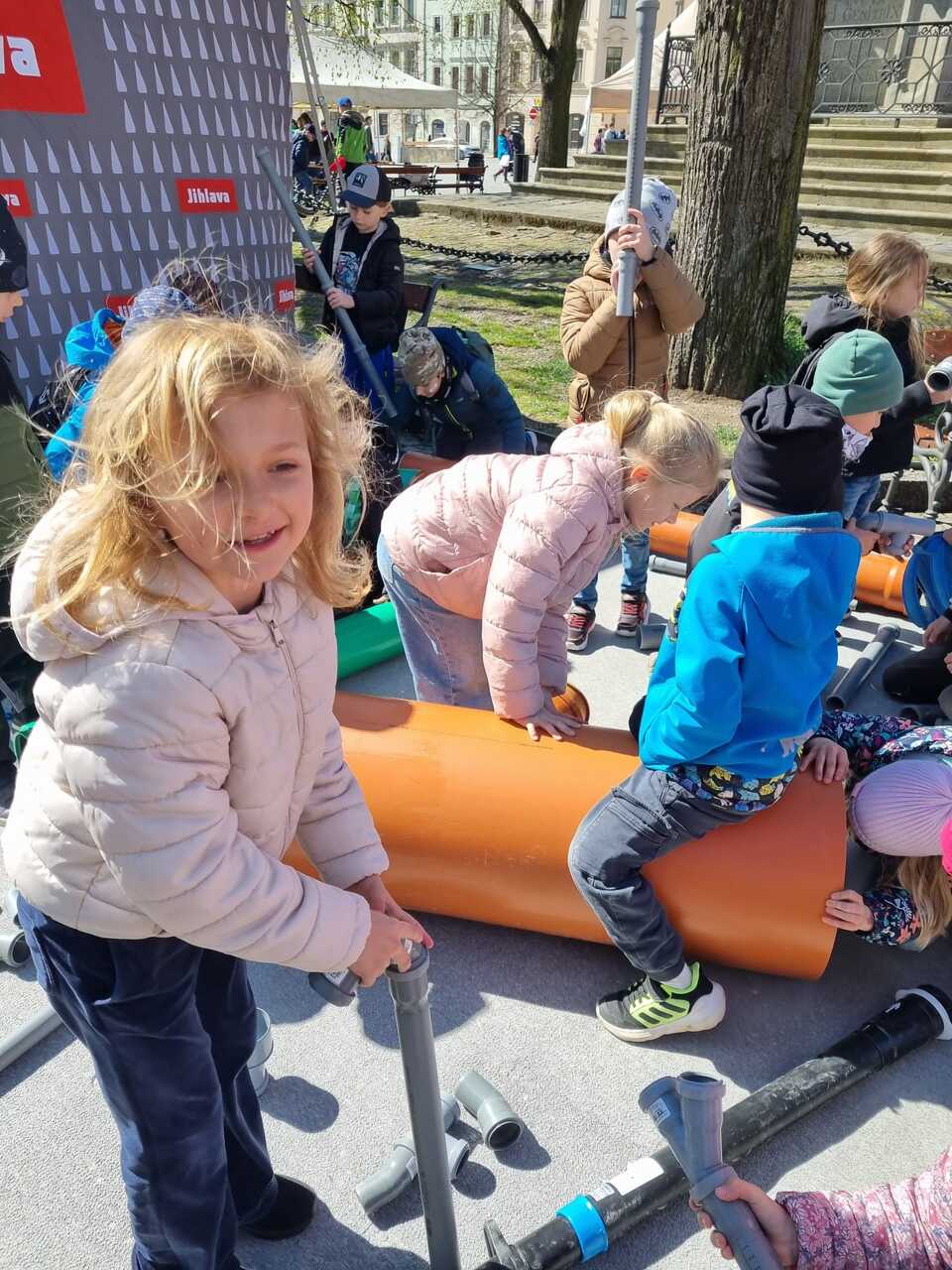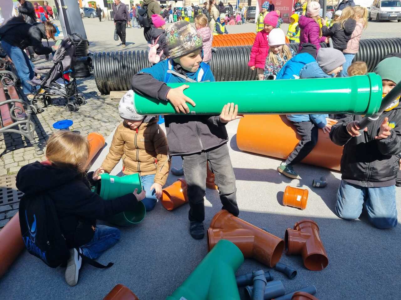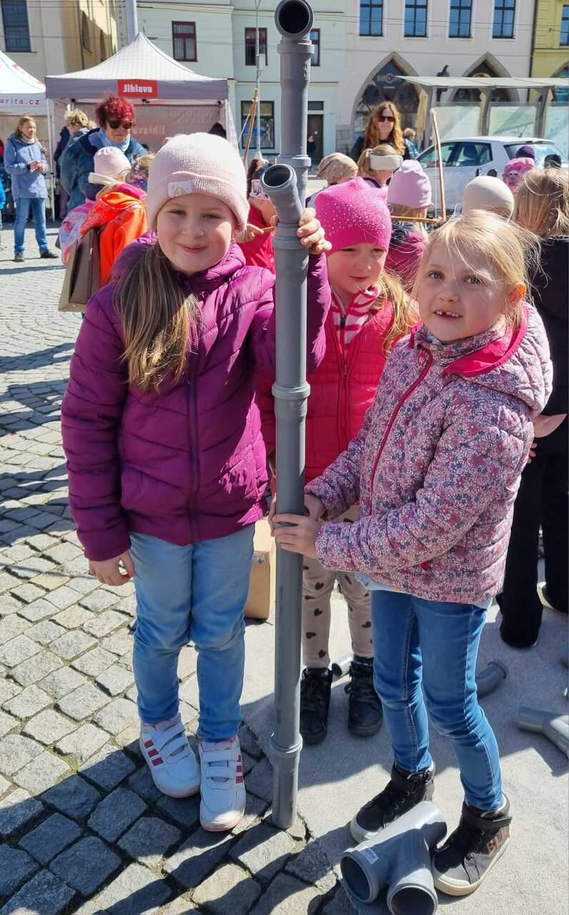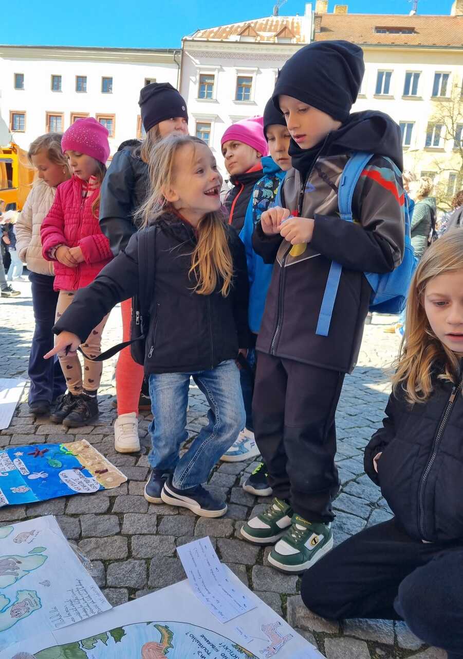 Prvňáčci vyrazili na Den země, který se konal na Masarykově náměstí. Bylo tam hodně zajímavých stanovišť s úkoly a ukázkami. Děti si vyzkoušely např. jak třídit odpad, stavět kanalizaci, prolézt kanalizační rourou, slalom s popelnicí, pracovat s mikroskopem atd. Měly možnost si prohlédnout obrázky rostlin a živočichů a na některé se podívat i zblízka. Ti neodvážnější žáci si pohladili laboratorního potkana a agamu.