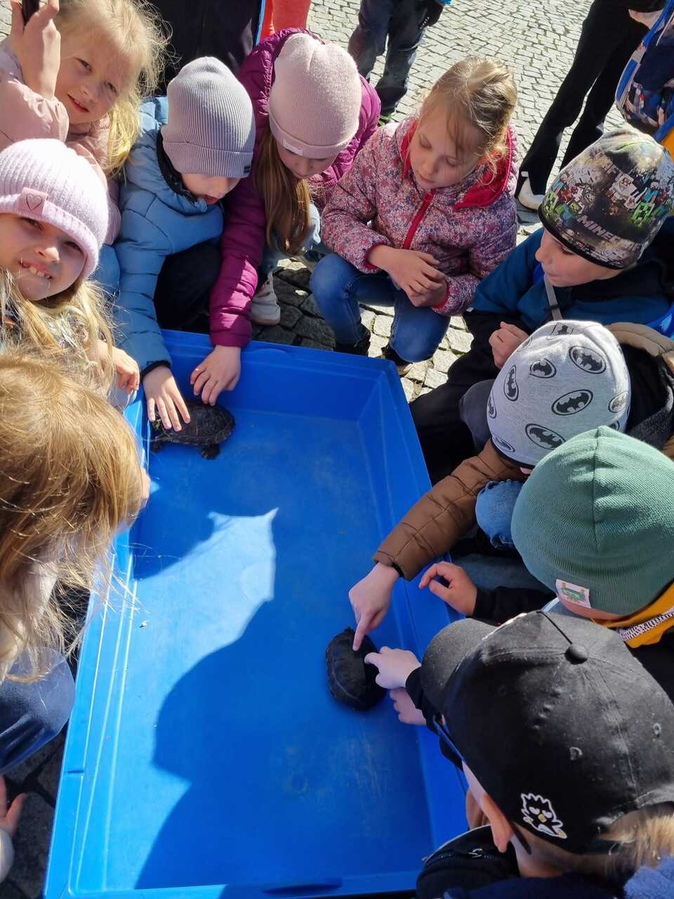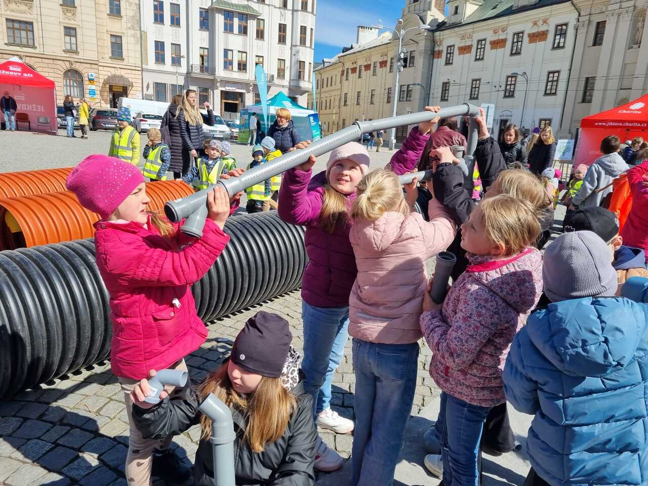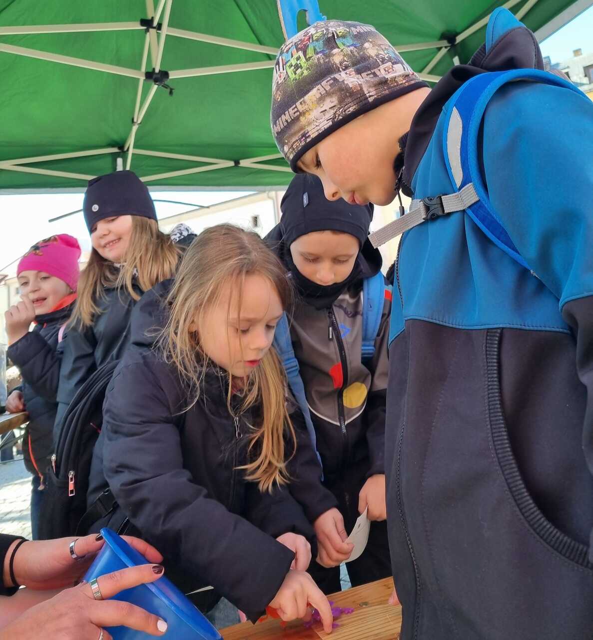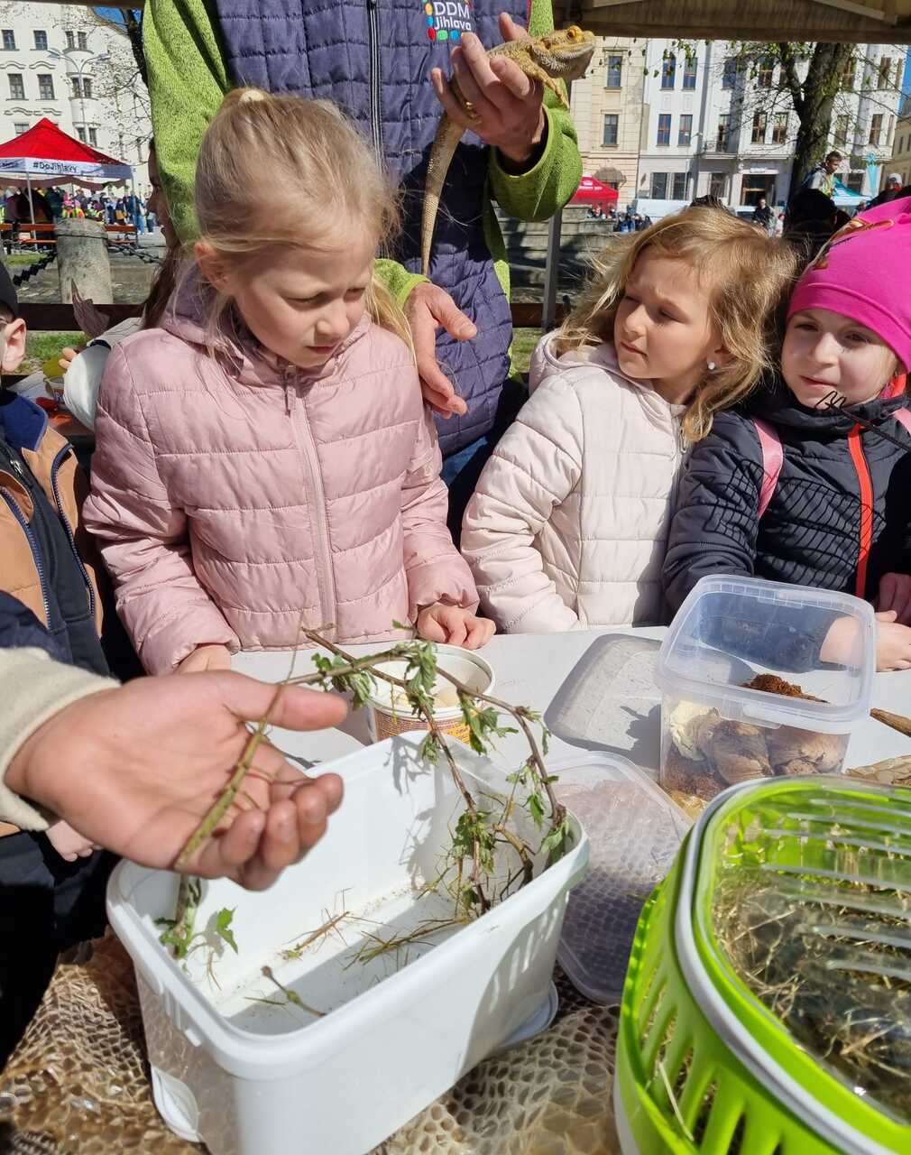 Prvňáčci vyrazili na Den země, který se konal na Masarykově náměstí. Bylo tam hodně zajímavých stanovišť s úkoly a ukázkami. Děti si vyzkoušely např. jak třídit odpad, stavět kanalizaci, prolézt kanalizační rourou, slalom s popelnicí, pracovat s mikroskopem atd. Měly možnost si prohlédnout obrázky rostlin a živočichů a na některé se podívat i zblízka. Ti neodvážnější žáci si pohladili laboratorního potkana a agamu.