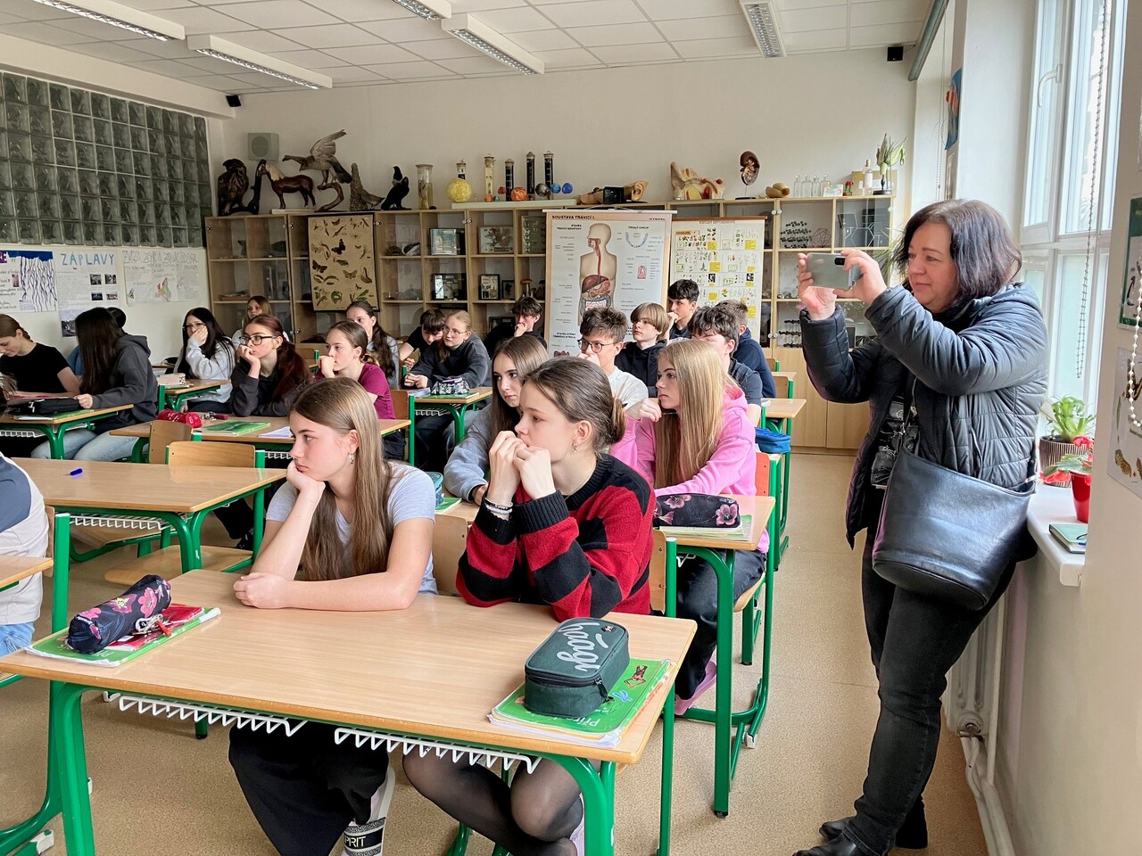 Dnes, 20.4.2026, za námi do 8.B přišla paní Ilona z Odboru školství, kultury a tělovýchovy Magistrátu města Jihlavy a zajímala se o to, jak se chystáme na prezentaci školy u příležitosti Dne Země 2026.