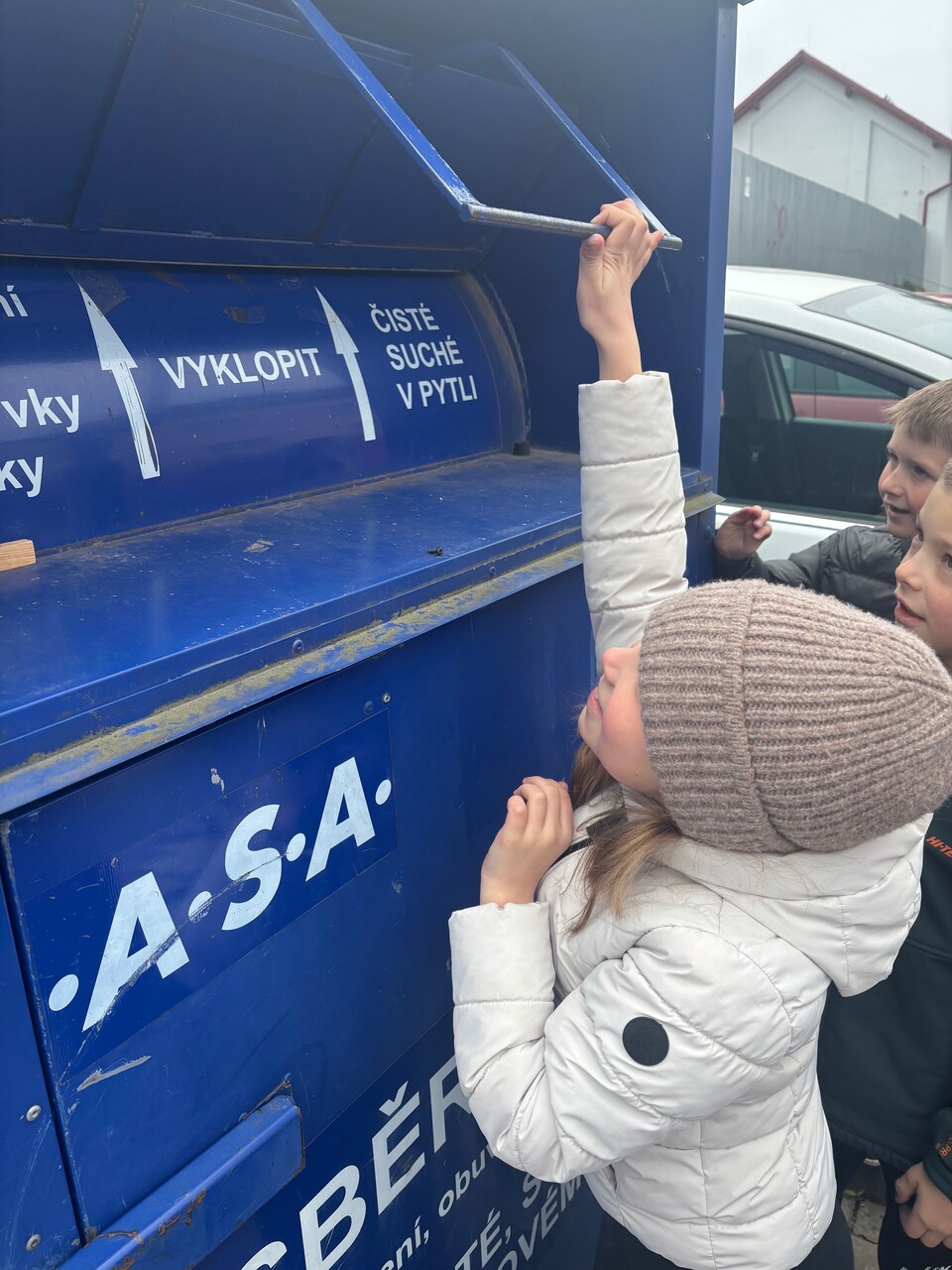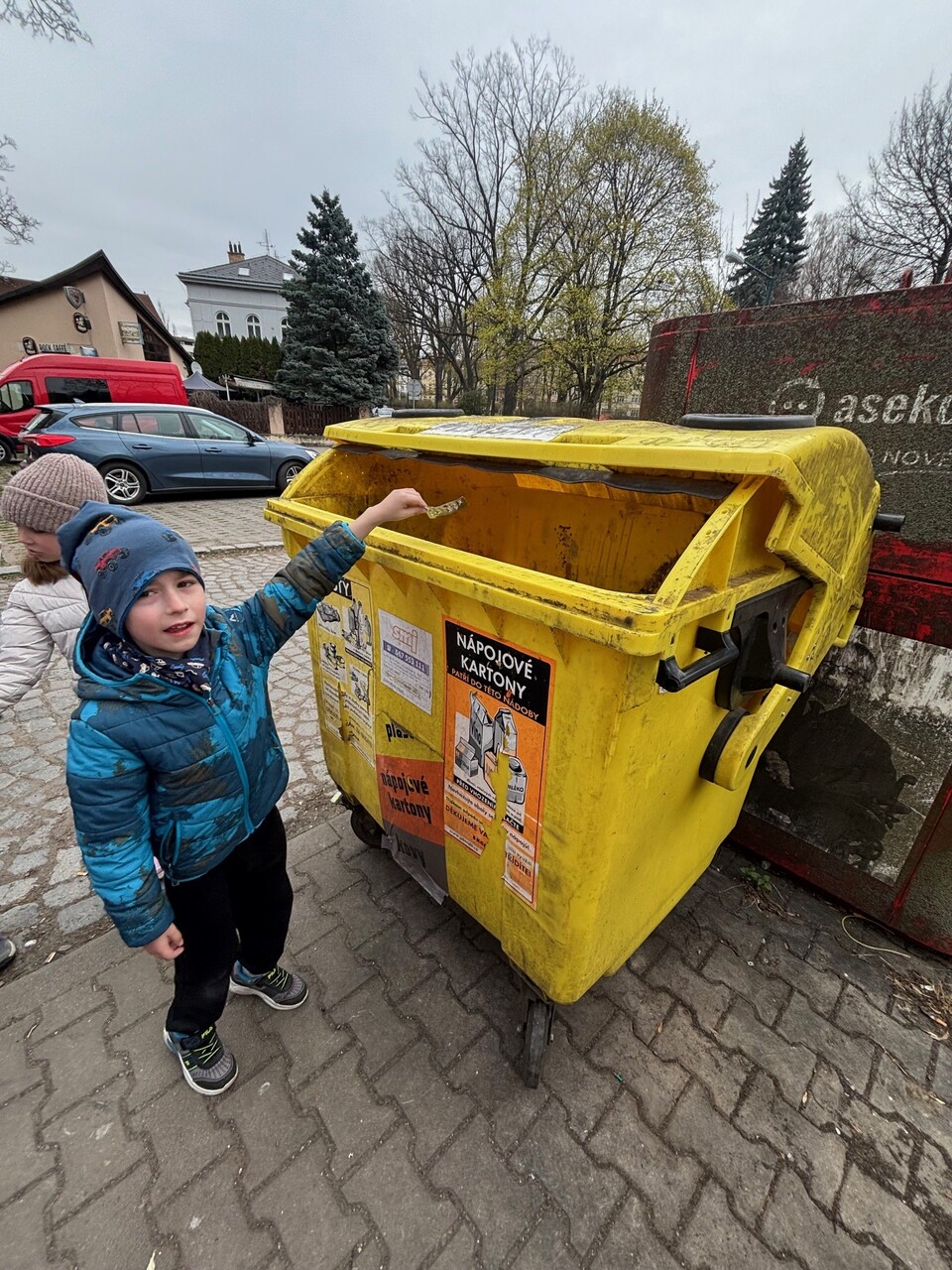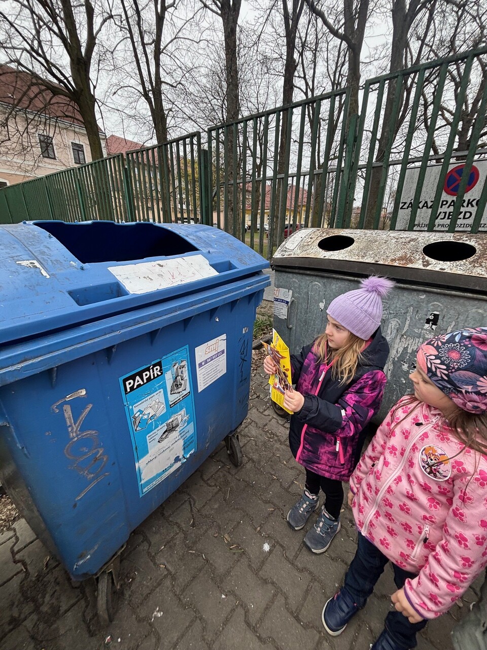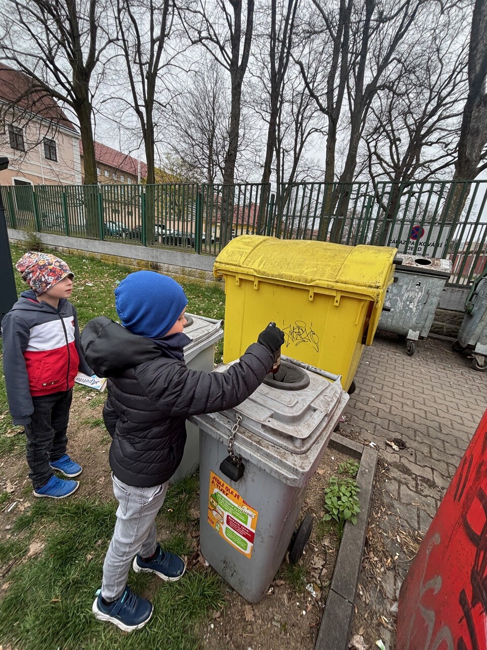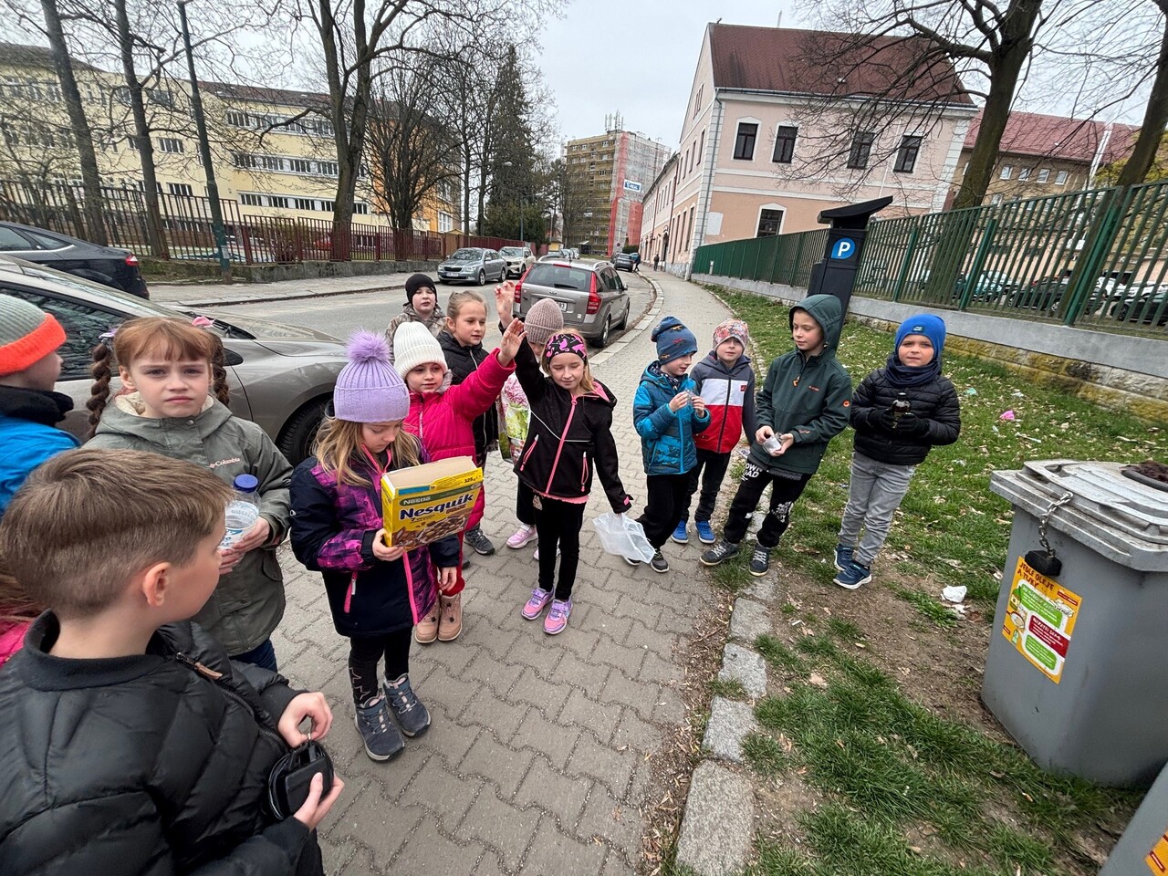 Prvňáčci se nyní ve škole učí, jak správně třídit odpad. Vyšli jsme tedy do ulic, abychom si to vyzkoušeli. Nesli jsme spoustu věcí – kávovou sedlinu, platíčko od léků, použitý rostlinný olej, trička, baterie, nabíječku apod. Cílem bylo najít nejbližší barevné kontejnery. Zjistili jsme, že jich je v ulicích opravdu hodně a většinu odpadu jsme vytřídili hned na začátku cesty. Trochu nás ale potrápil sběrný kontejner na textil. Naštěstí máme ve třídě děti, které si všímají, co se nachází v blízkosti školy a jejich bydliště a dovedli nás i k tomuto poslednímu (modrému) cíli.