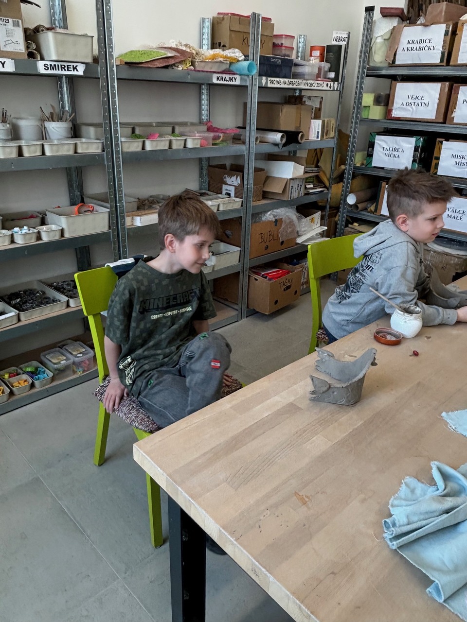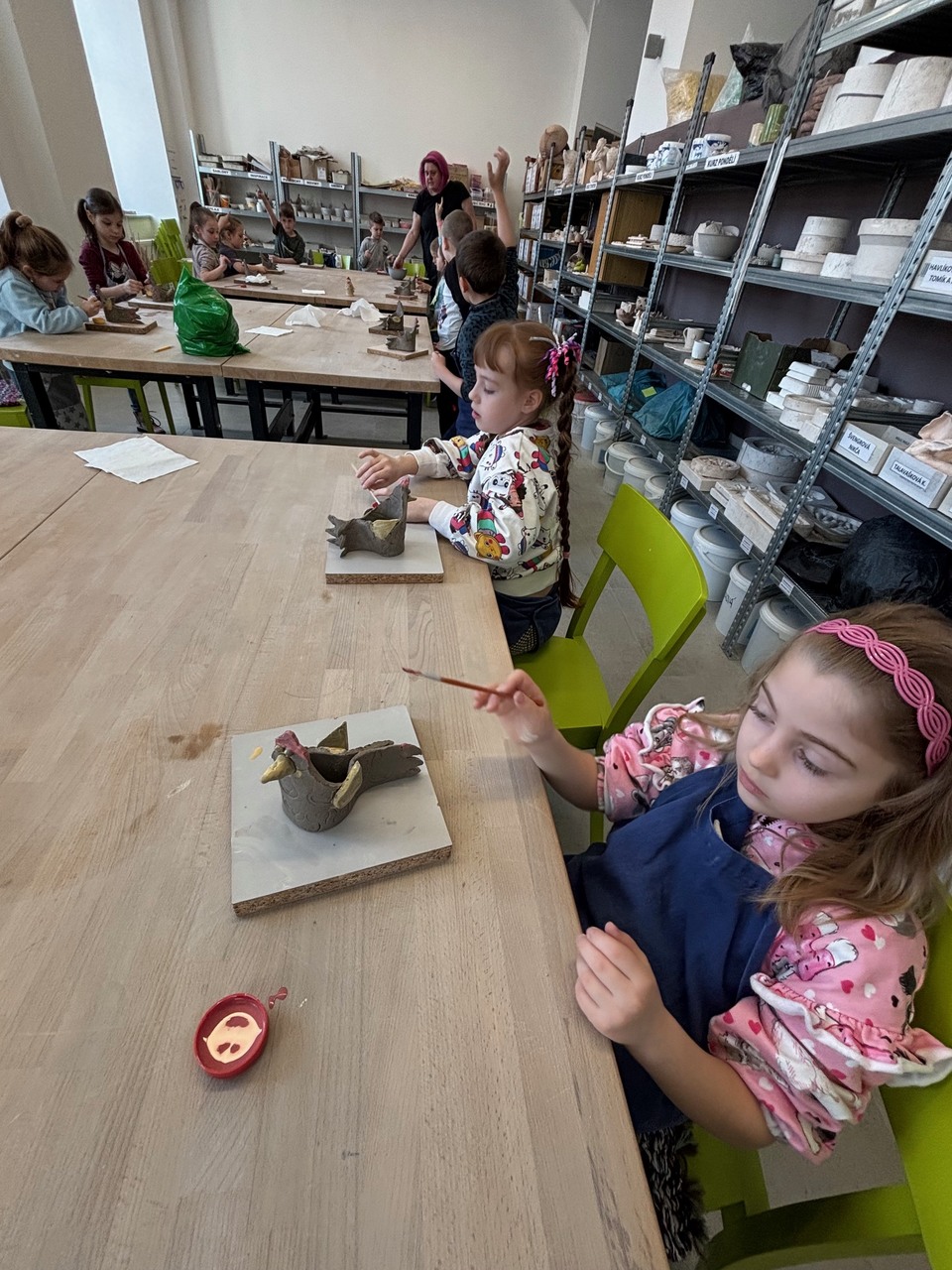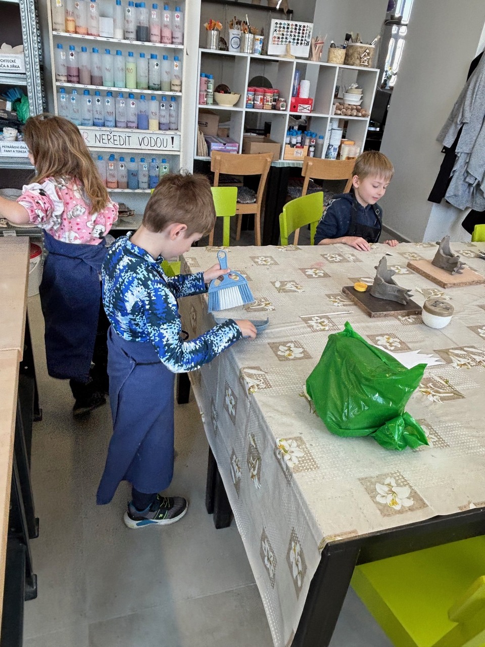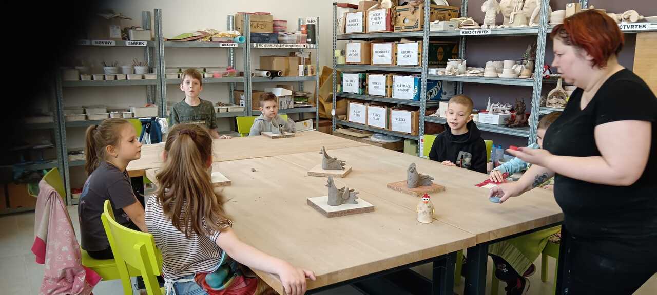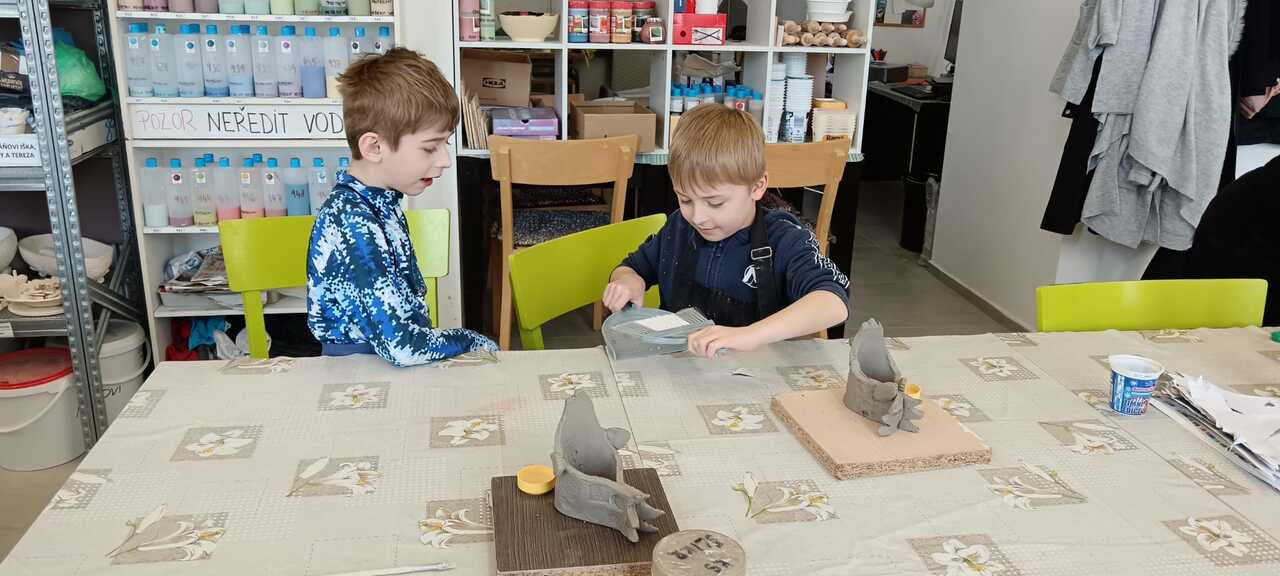 Blíží se Velikonoce a my jsme si chtěli něco pěkného vyrobit. Navštívili jsme keramickou dílnu a tvořili dekoraci ve tvaru slepičky. Některé děti pracovaly s keramickou hlínou poprvé, další sice chodí do kroužku keramiky, ale tady to byla činnost v jiném prostředí, s jiným pomocným materiálem a novou paní učitelkou. Zkrátka změna. Za necelé dvě hodiny bylo hotovo a nachystáno na vyschnutí.