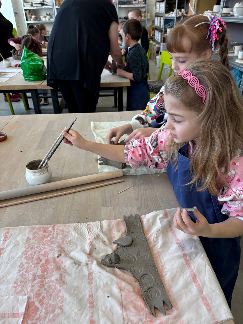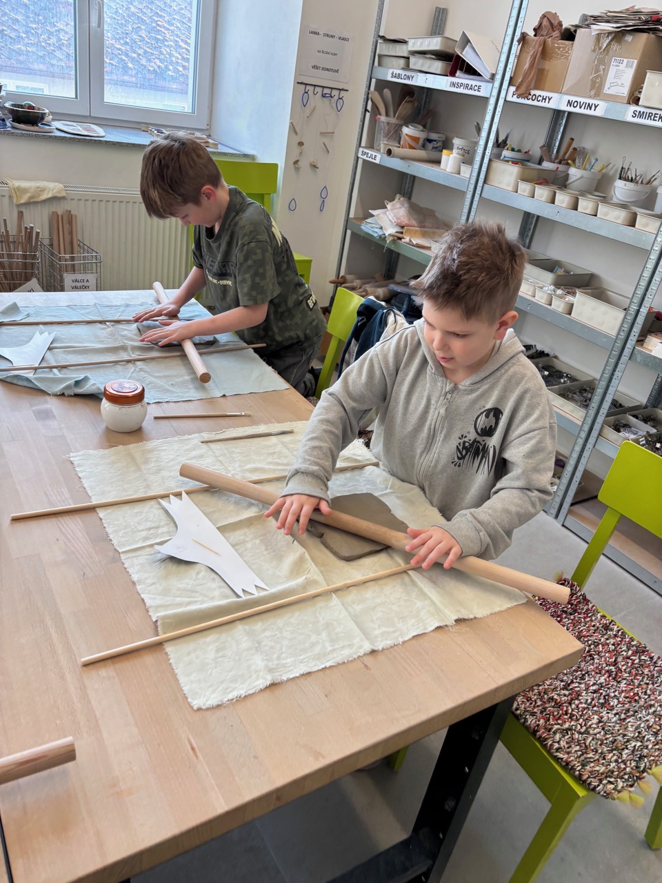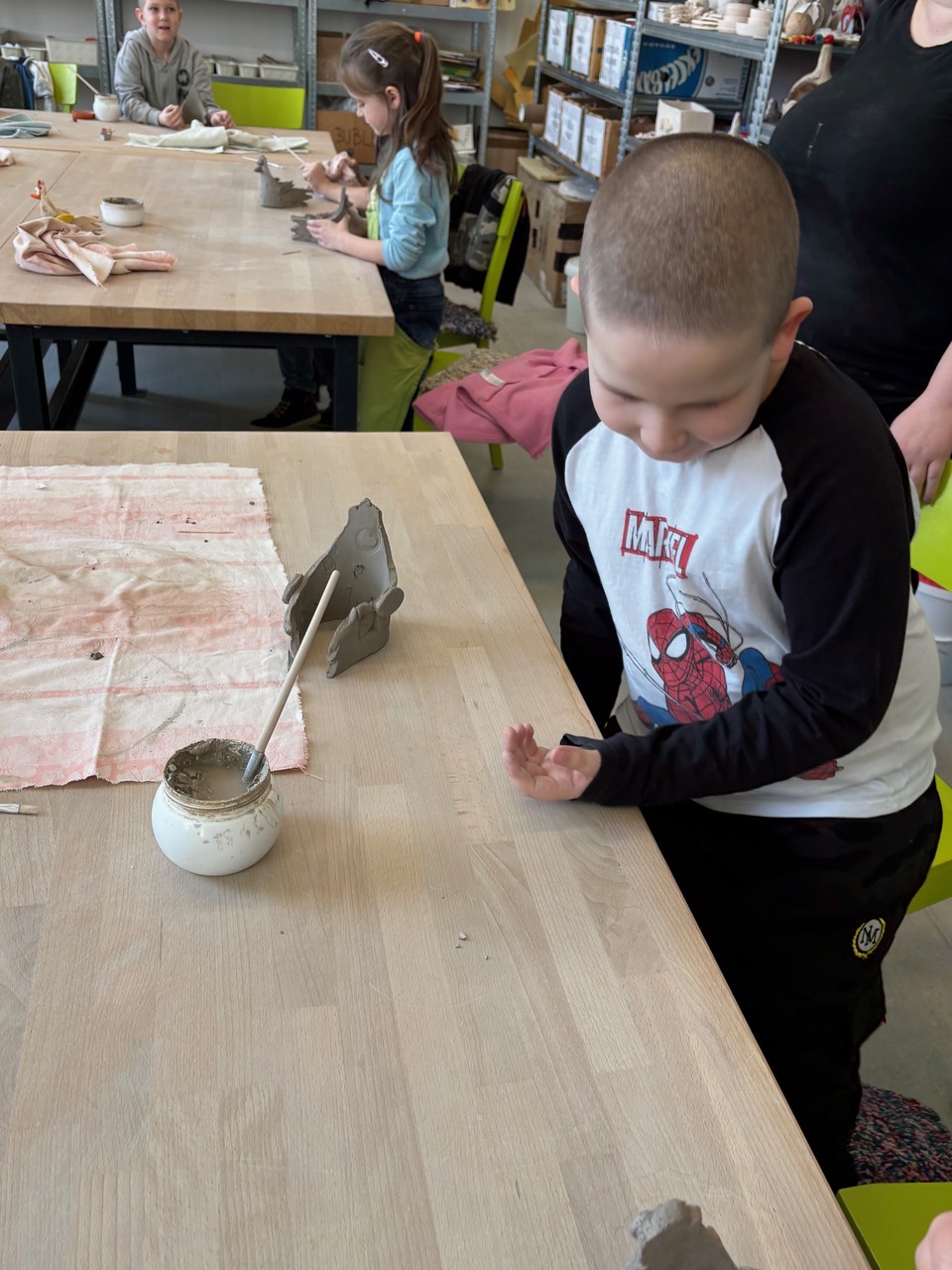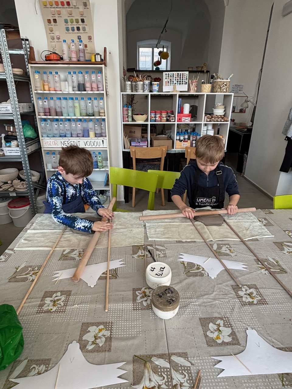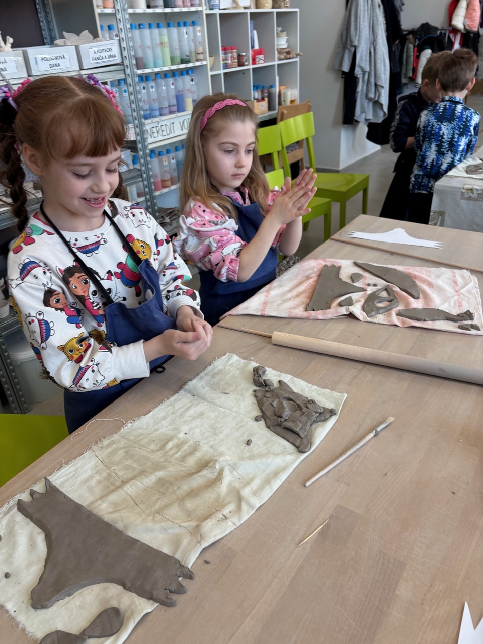 Blíží se Velikonoce a my jsme si chtěli něco pěkného vyrobit. Navštívili jsme keramickou dílnu a tvořili dekoraci ve tvaru slepičky. Některé děti pracovaly s keramickou hlínou poprvé, další sice chodí do kroužku keramiky, ale tady to byla činnost v jiném prostředí, s jiným pomocným materiálem a novou paní učitelkou. Zkrátka změna. Za necelé dvě hodiny bylo hotovo a nachystáno na vyschnutí.