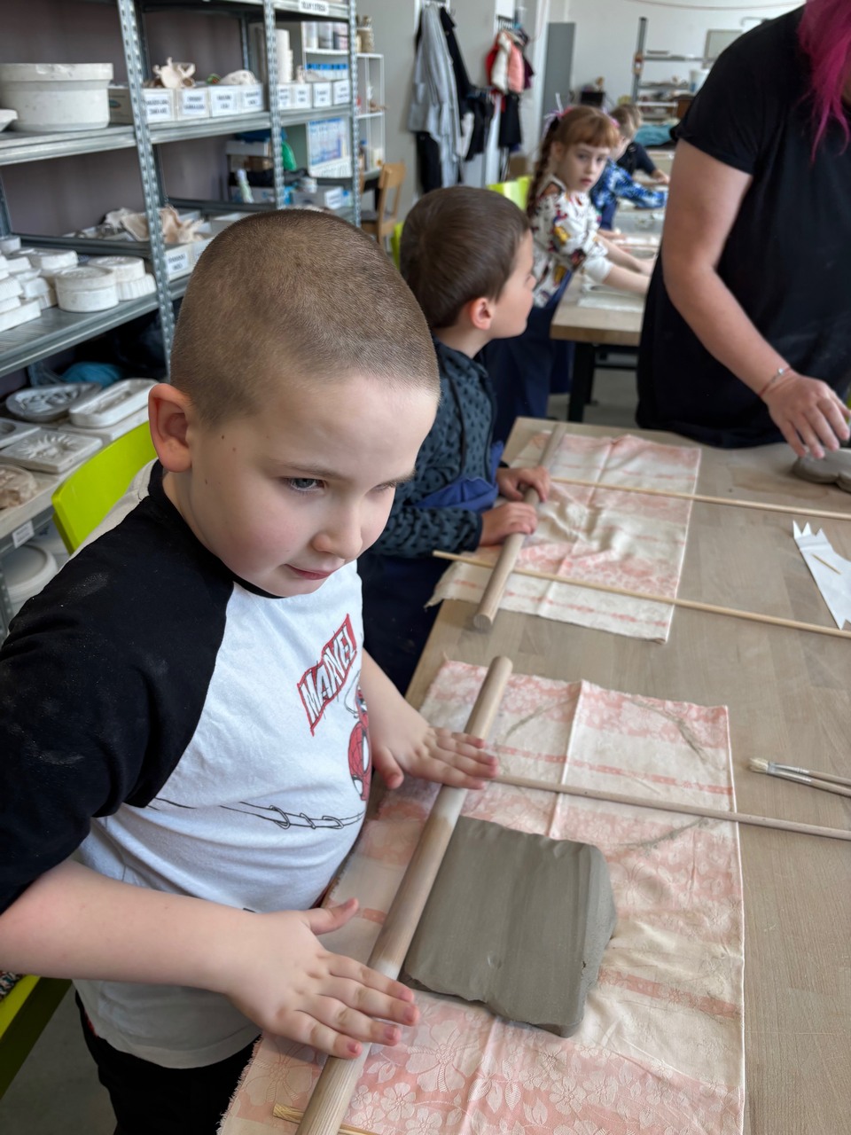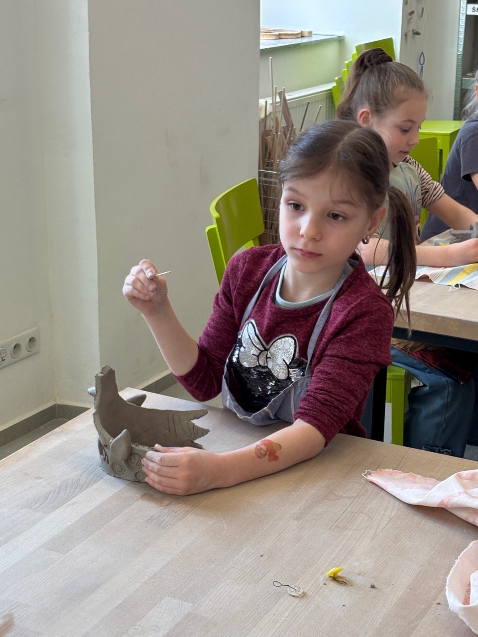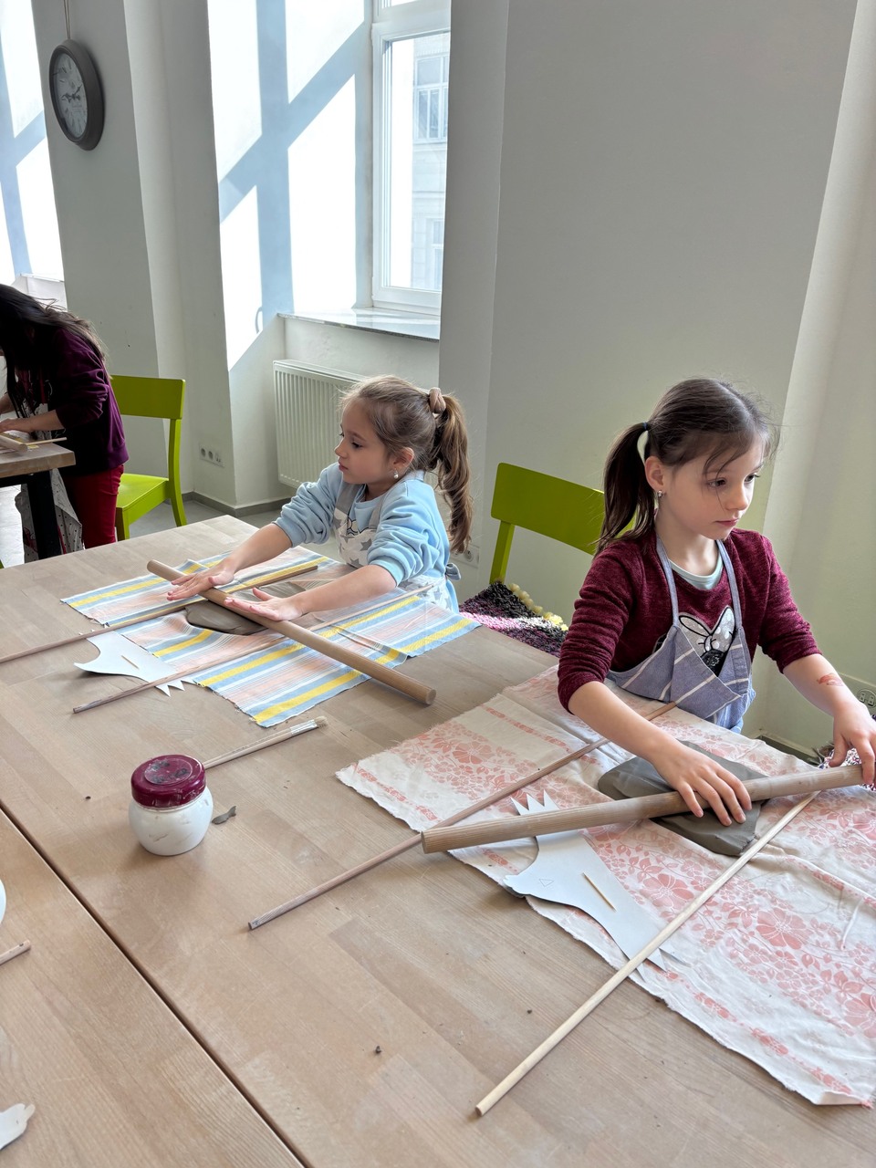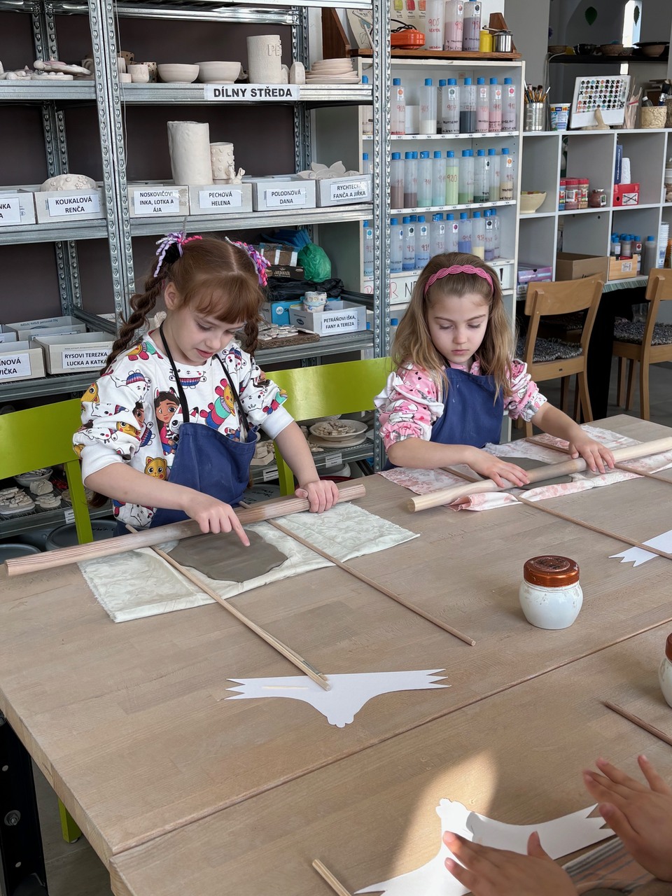 Blíží se Velikonoce a my jsme si chtěli něco pěkného vyrobit. Navštívili jsme keramickou dílnu a tvořili dekoraci ve tvaru slepičky. Některé děti pracovaly s keramickou hlínou poprvé, další sice chodí do kroužku keramiky, ale tady to byla činnost v jiném prostředí, s jiným pomocným materiálem a novou paní učitelkou. Zkrátka změna. Za necelé dvě hodiny bylo hotovo a nachystáno na vyschnutí.